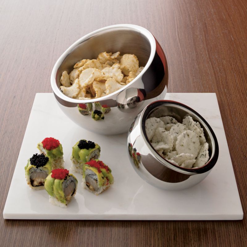 Hosting a dinner party provides a great opportunity to make some delicious food & drink, catch up with friends and really have some fun with your preparations and decor! I love putting aside our "every day" dishes and getting a chance to use some of our more modern appetizer plates, colorful bowls and fancy stemware. CB2 has some pretty cool and unusual serving pieces and dinnerware that can really give any ordinary dinner party a lot of personality!